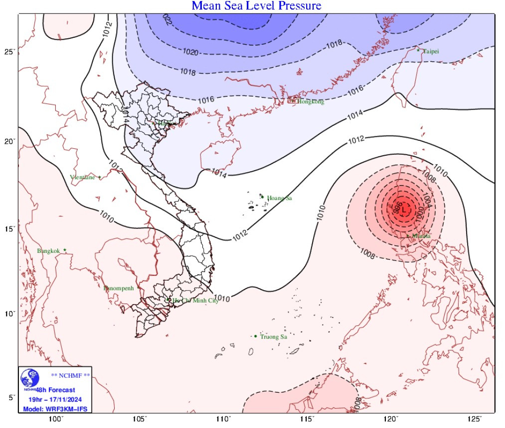 Trên biển, từ ngày 18/11, ở vịnh Bắc Bộ gió Đông Bắc mạnh dần lên cấp 6, giật cấp 7-8; biển động; sóng biển cao từ 2,0-4,0m. Ở khu vực Bắc Biển Đông gió Đông Bắc mạnh cấp 6-7, giật cấp 8-9; biển động mạnh; sóng biển cao từ 3,0-5,0m.