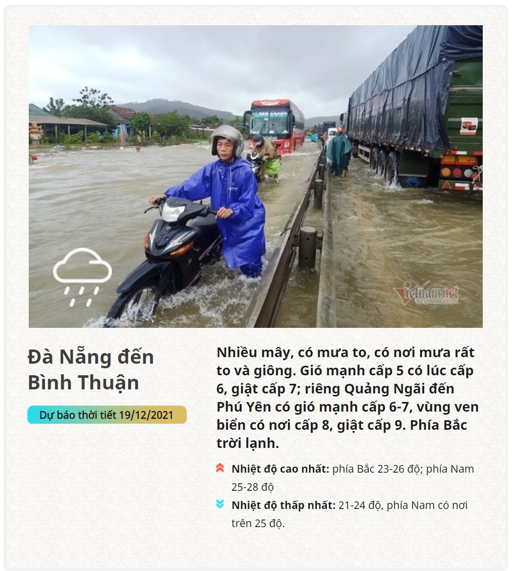 19/12/2021 13:06Dự báo thời tiết 19/12: Miền Bắc rét nhất 9 độ, Trung Bộ hứng mưa tầm tã