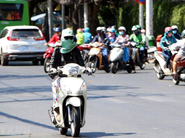 Trước tình hình nắng nóng người dân khi ra đường cần che chắn, bôi kem chống nắng, đeo kính râm và đội mũ.