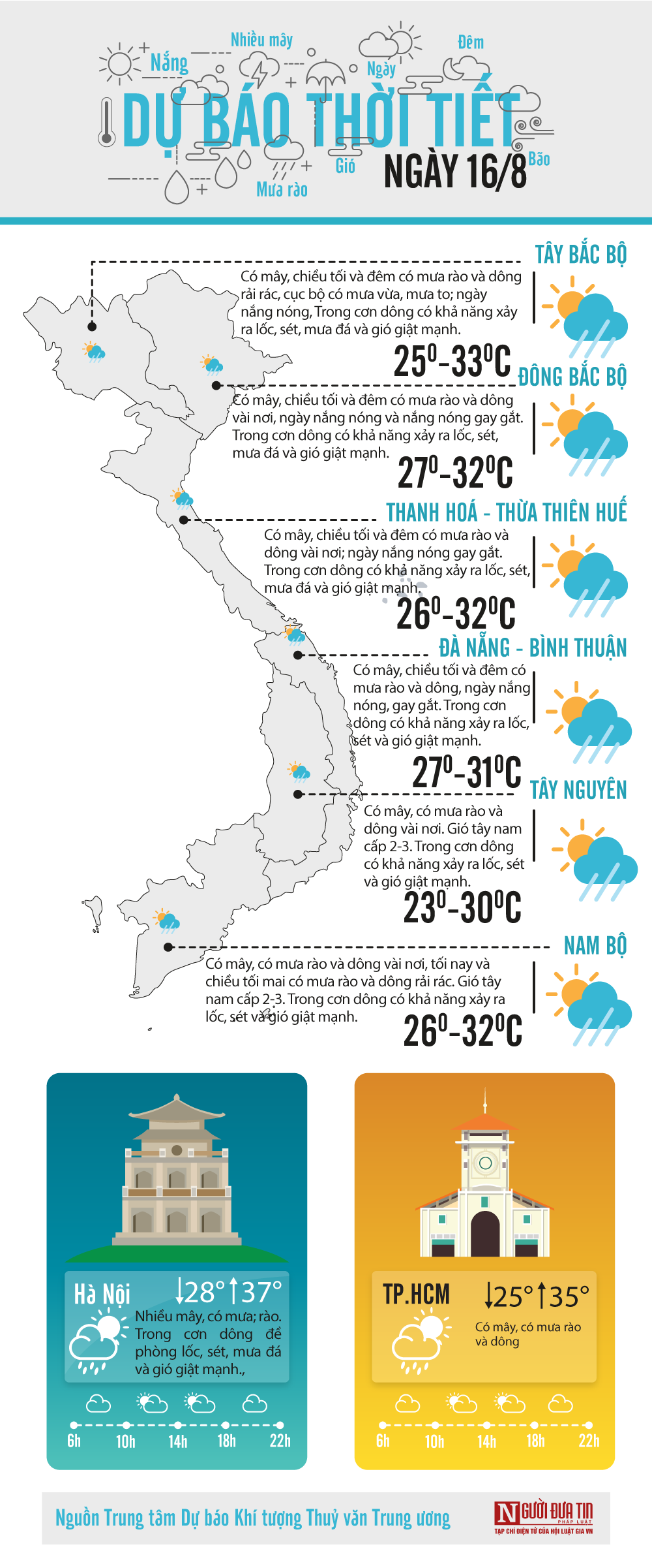 16/08/2020 15:00Dự báo thời tiết ngày 16/8/2020: Mưa lớn gia tăng ở các tỉnh Bắc Bộ
