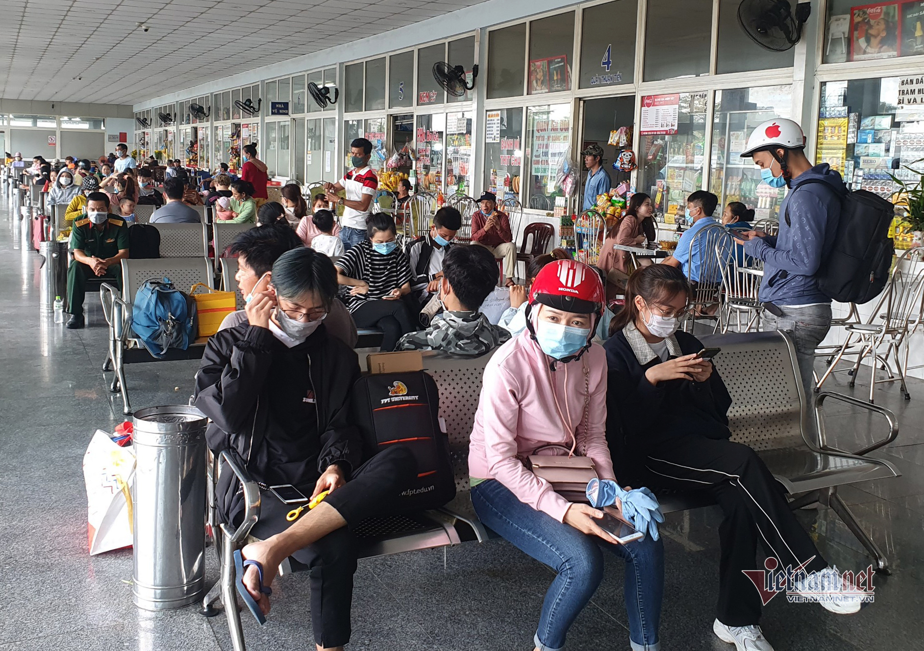 Tại bến xe trung tâm, lượng người đổ về mỗi lúc một đông. Trong khu vực chờ chật kín hành khách. Khu vực bến, bãi đã dày đặc các xe khách đỗ chờ sẵn.