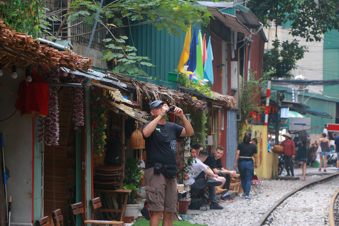 Ngày 8-10, theo ghi nhận của chúng tôi, tại khu vực những quán cà phê đường tàu (Hà Nội), trước thông tin chính quyền sắp "xoá bỏ" những quán cà phê này, đã có rất đông du khách đến tham quan, chụp ảnh.