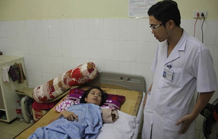 Bác sĩ Trần Văn Thuyên, Trưởng khoa Chấn thương chi, cho biết bệnh nhân Yến được chuyển từ tuyến dưới tới trong tình trạng tỉnh táo, nhưng da niêm mạc xanh nhợt. Cánh tay trái đứt lìa qua khuỷu, dập nát đầu vết thương.