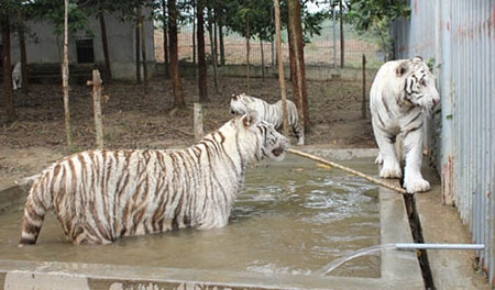 Chuồng hổ trắng 4 con tại Trại Bò. Ảnh: Hải Bình. |