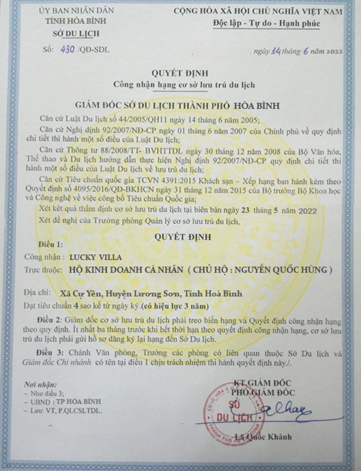 Ngày 13/7, anh Duy Việt (Thanh Nhàn, Hà Nội) vô tình đọc được bài quảng cáo về căn biệt thự mang tên Lucky Villa, có địa chỉ ở xã Cự Yên, huyện Lương Sơn, Hòa Bình. Hình ảnh căn biệt thự đẹp lung linh, sang trọng, có hồ bơi và mức giá ưu đãi, giảm 50% nhân dịp khai trương đã thu hút anh Việt.