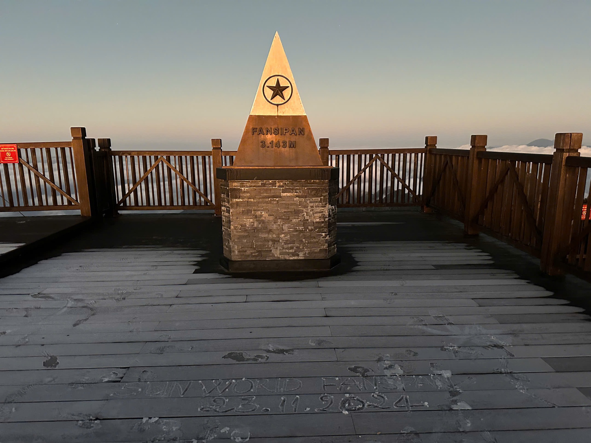 Theo đó, vào sáng sớm nay, nhiều du khách đến tham quan đỉnh Fansipan đã được tận mắt chứng kiến khung cảnh khắp nơi phủ trắng bởi một lớp sương muối mỏng. Với nhiệt độ ở mức 2 độ C, đủ thấp để hình thành những tinh thể băng trong suốt, bao phủ khắp các lối đi, điểm tham quan và cây cối. Trên các bậc đá, sàn gỗ hay các con đường lên xuống, nơi đâu cũng được phủ một lớp mỏng màu trắng giống như băng tuyết. Đặc biệt, cây cối ở đây được phủ màu trắng bạc nên càng trở nên huyền ảo, khiến du khách vô cùng hào hứng khi đến tham quan.