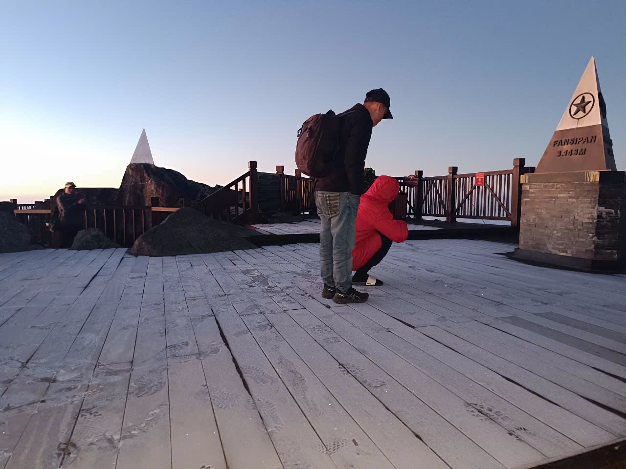 Đáng chú ý, trước khung cảnh thú vị này, một vài du khách thích thú trượt trên lớp sương muối. Nhiều người gọi vui rằng đây là hoạt động "trượt băng" trên đỉnh Fansipan.