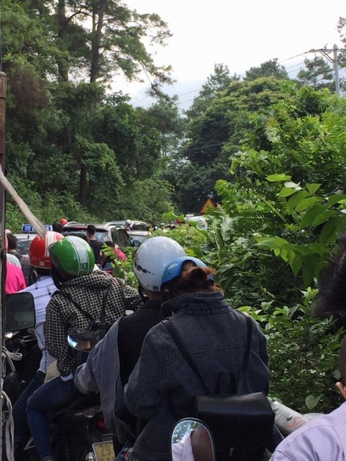 Lên được đến thị trấn Tam Đảo cũng không thoát khỏi tắc đường. |