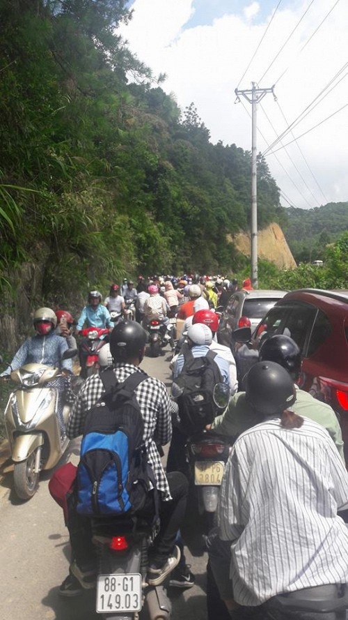Cung đường đèo lên Tam Đảo kẹt cứng. |
