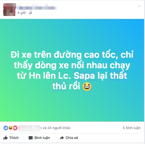 Không khó để bắt gặp những dòng trạng thái than thở về tình hình tắc đường ở Sapa. |