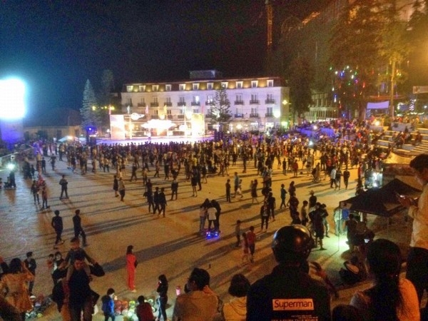 Lượng người đổ về quảng trường khu vực nhà thờ Sapa |