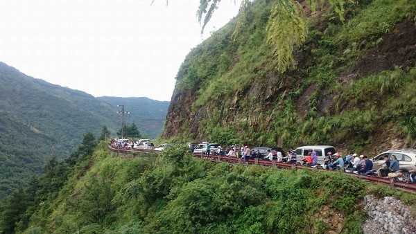 2/9 năm nay, khách du lịch ùn ùn kéo về thị trấn Mộc Châu du ngoạn, đặc biệt là cung đường lên cửa khẩu Lóng Sập khiến nơi đây kẹt cứng chỉ nhìn thấy… toàn là người.