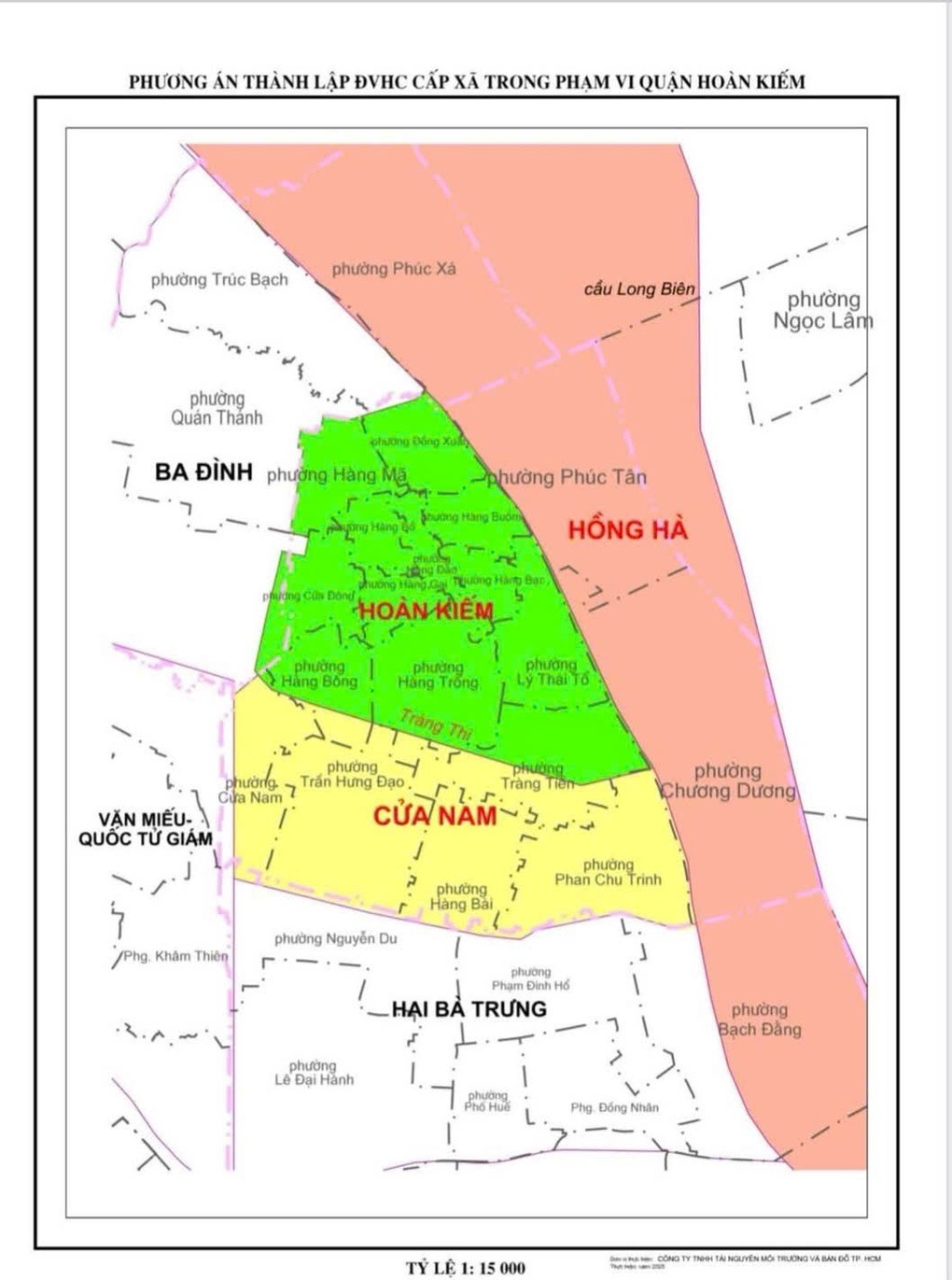 Nội dung văn bản cho thấy, đơn vị hành chính cơ sở Hồng Hà sẽ được hình thành từ việc sáp nhập toàn bộ hoặc một phần diện tích tự nhiên và dân số từ nhiều phường khu vực ngoài đê thuộc địa bàn 5 quận: Tây Hồ, Hoàn Kiếm, Ba Đình, Long Biên, Hai Bà Trưng.