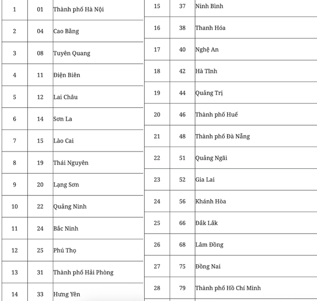 21/06/2025 16:57Dự kiến mã số đơn vị hành chính của 34 tỉnh, thành sau sáp nhập: Hà Nội là 01