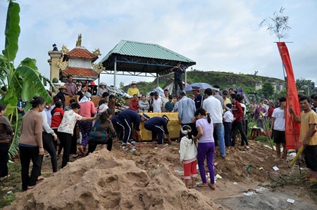 7h cùng ngày, quan tài thiếu nữ vắn số được gia đình đưa về nghĩa trang an táng. "Trước lúc mất, cháu dùng điện thoại ghi âm lời trăng trối. Cháu có di nguyện được chôn gần nhà nên gia đình đưa lên nghĩa trang của xã, cách nhà 4 km", ông Nam - bác ruột của nữ sinh cho biết.