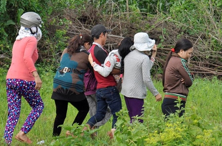 Sau khi đưa con đến nghĩa trang, người mẹ ngất xỉu. Ảnh: Ngọc An. |