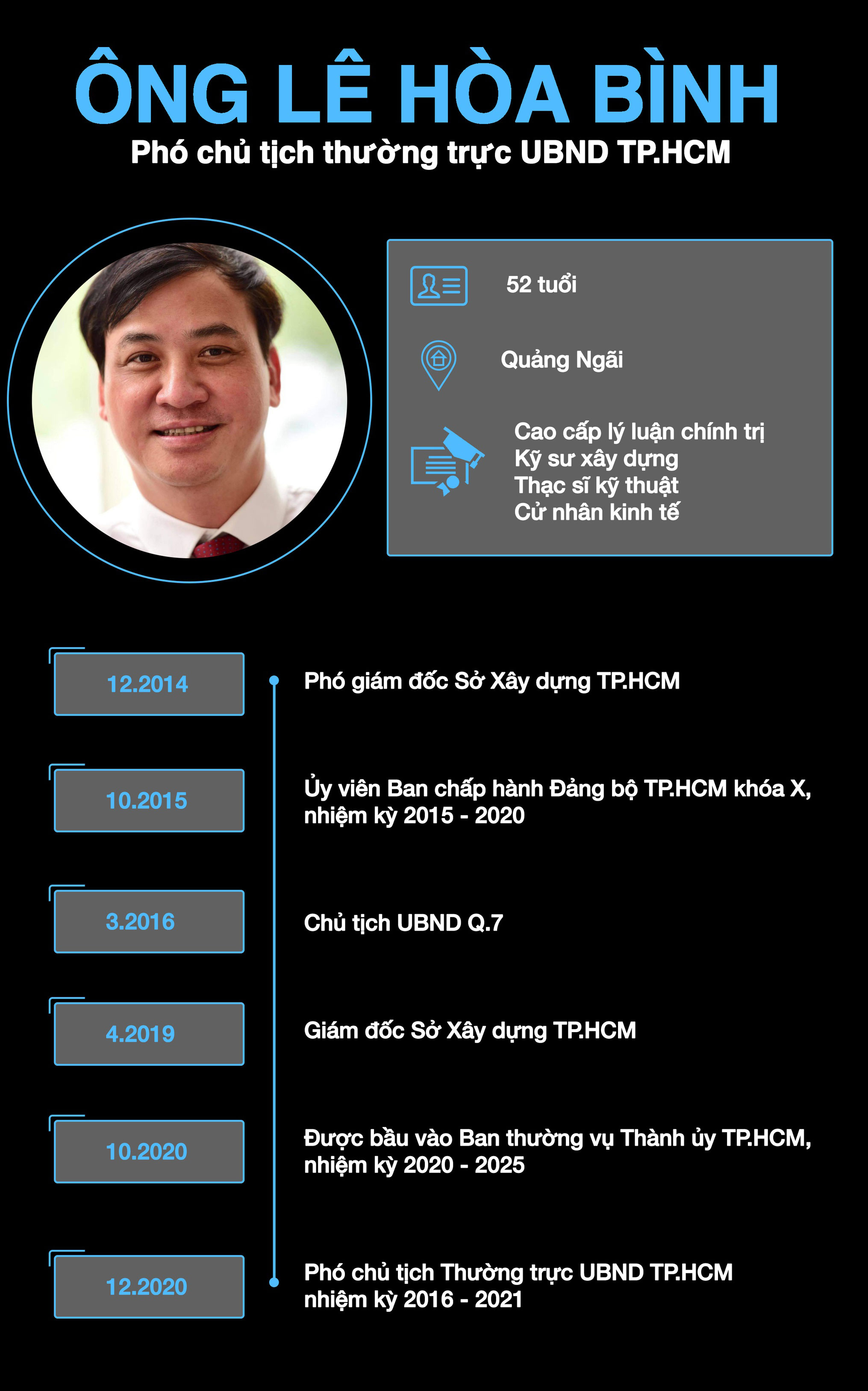Cụ thể, vào lúc 7h20 ngày 29/3, tại km21+700 cao tốc Thành phố Hồ Chí Minh-Trung Lương hướng Thành phố Hồ Chí Minh đi Trung Lương (thuộc xã Thạnh Đức, huyện Bến Lức, tỉnh Long An) xe ôtô của ông Lê Hòa Bình, Phó Chủ tịch Thường trực Ủy ban Nhân dân Thành phố Hồ Chí Minh trên đường đi công tác đã gặp tai nạn.
