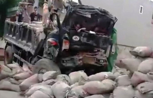 Người điều khiển phương tiện là lái xe Nguyễn Văn Liên, đi cùng có thiếu tá Vũ Mạnh Thắng, cán bộ Công an TP Tam Điệp.