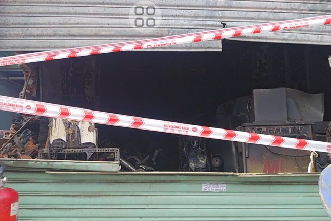 Vụ cháy làm nhiều tài sản bên trong căn nhà bị hư hỏng, 2 xe máy ở lối ra vào bị cháy trơ khung sắt.