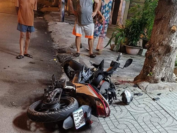 Trước đó, khoảng 1h ngày 21/9, anh T. điều khiển xe máy BS 86B5 - 275.39 lao vào gốc cây trên lề đường Trần Hưng Đạo (TP.Phan Thiết). Tại hiện trường, xe máy nằm trên lề, đầu xe bể nát, nhiều mảnh vỡ văng tung tóe.