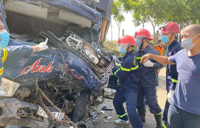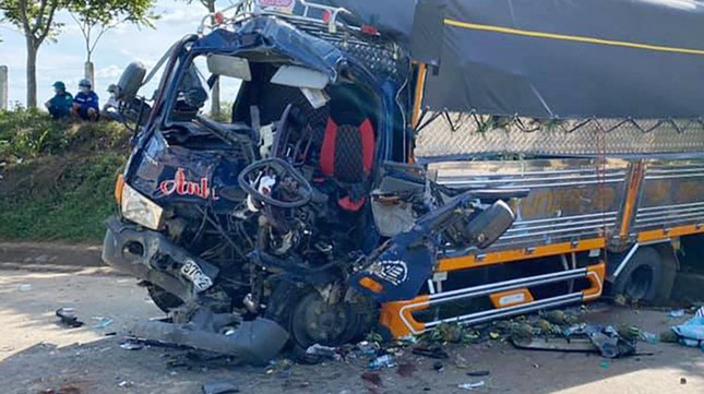 Phần đầu cả 2 chiếc xe đều bị biến dạng, hư hỏng nặng. Riêng xe 37C-289.19 cabin bẹp dúm, tài xế mắc kẹt trên ghế lái được xác định đã tử vong.