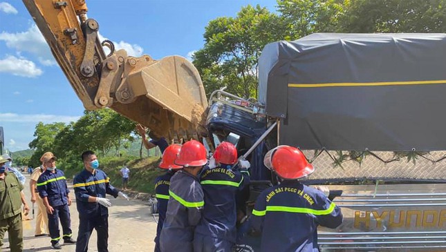 Để đưa thi thể tài xế ra ngoài, lực lượng cứu hộ đã dùng nhiều thiết bị chuyên dụng như máy đục, máy cắt. Tuy nhiên, phải đến khi có sự trợ giúp của chiếc máy xúc, khoang cabin xe tải mới được phá và đưa tài xế ra ngoài.
