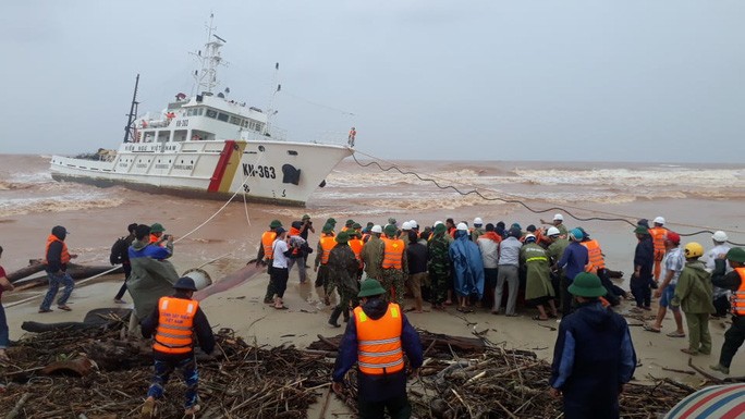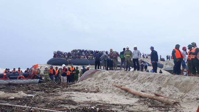 Trước đó, sáng sớm cùng ngày, hàng trăm người gồm các lượng quân đội, biên phòng, cảnh sát biển, chính quyền địa phương đã có mặt tại bờ biển xã Triệu An, huyện Triệu Phong (tỉnh Quảng Trị) để tham gia cứu hộ 9 người đang có mặt trên phần nổi còn lại của chiếc tàu Vietshin 01- đang bị mắc cạn, chìm dần, nằm cách bờ biển tỉnh này khoảng 400 m.