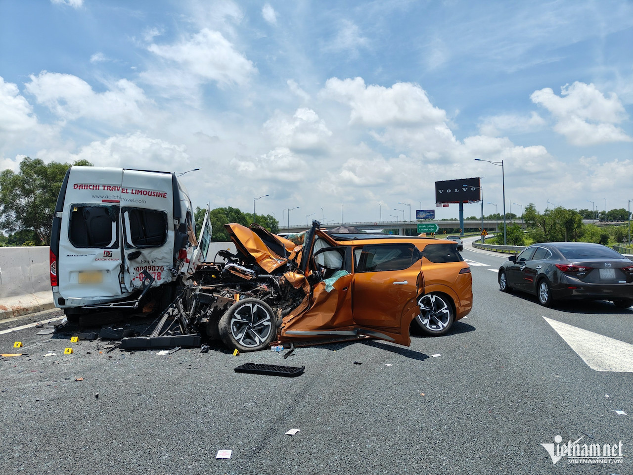 Ngay lúc đó, ô tô con BKS: 30K-757.xx do tài xế Trần Ngọc Thế (ở Thái Bình) điều khiển đã tông vào xe khách. Phương tiện này không có dấu hiệu giảm tốc độ trước khi gây tai nạn.