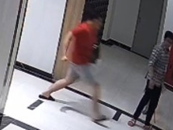 Lúc này, người đàn ông đi cùng bé trai đã đi đến dùng chân xua đuổi chó, ngay lập tức bị người mặc áo đỏ tiến lại hành hung dã man ngay tại sảnh chung cư.