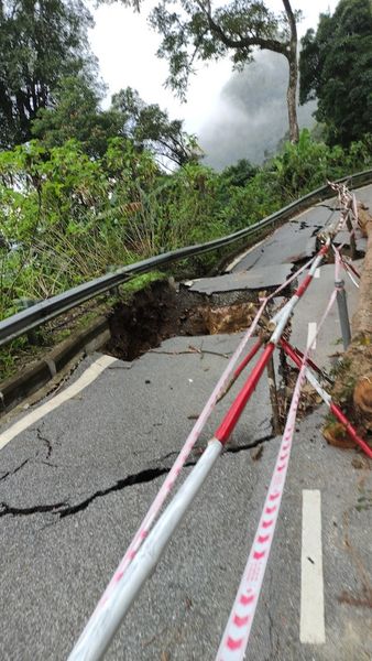 Chiều 2/10, cộng đồng mạng chia sẻ hình ảnh tuyến đường lên đền Thượng bị sụt lún, những hình ảnh ghi nhận cho thấy các lực lượng chức năng đã gắn biển báo, phong tỏa khu vực sạt lở để cảnh báo người dân.