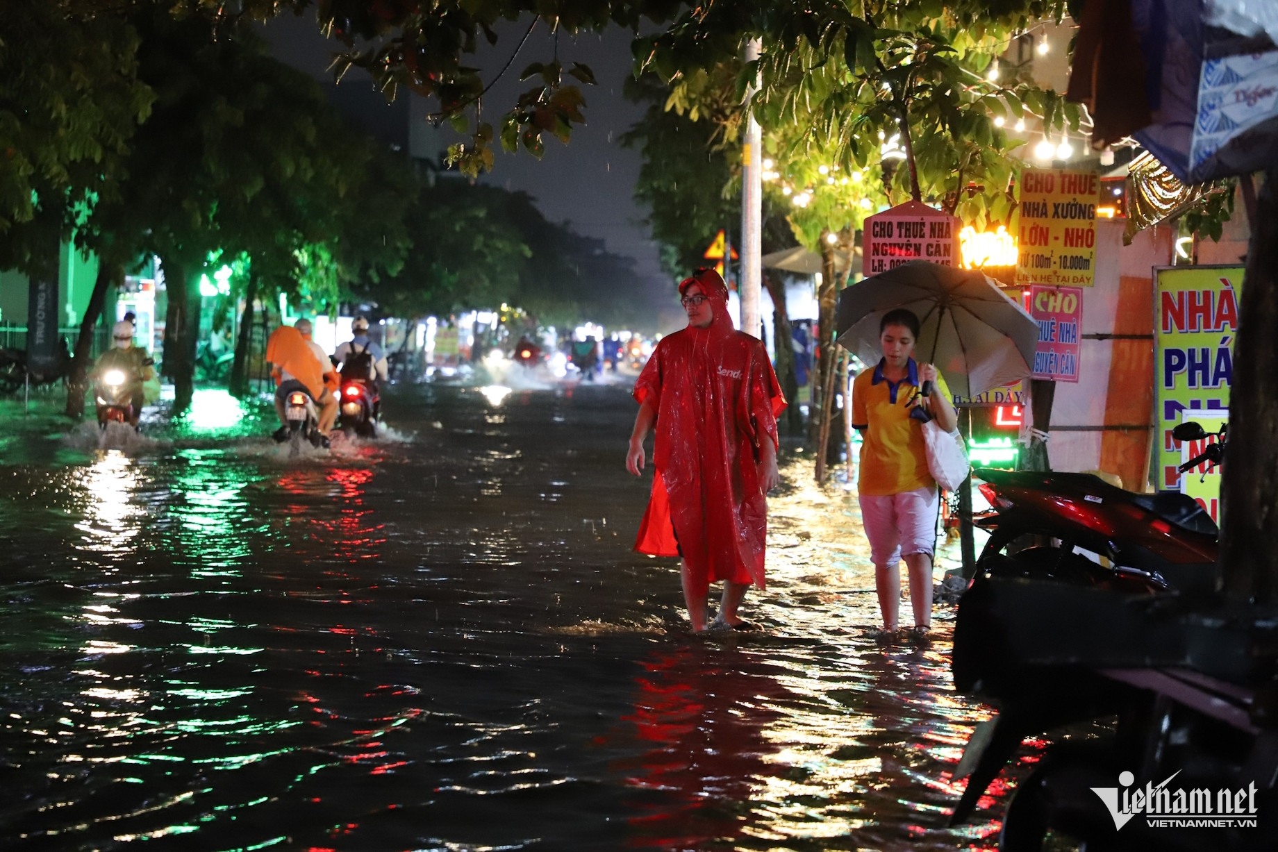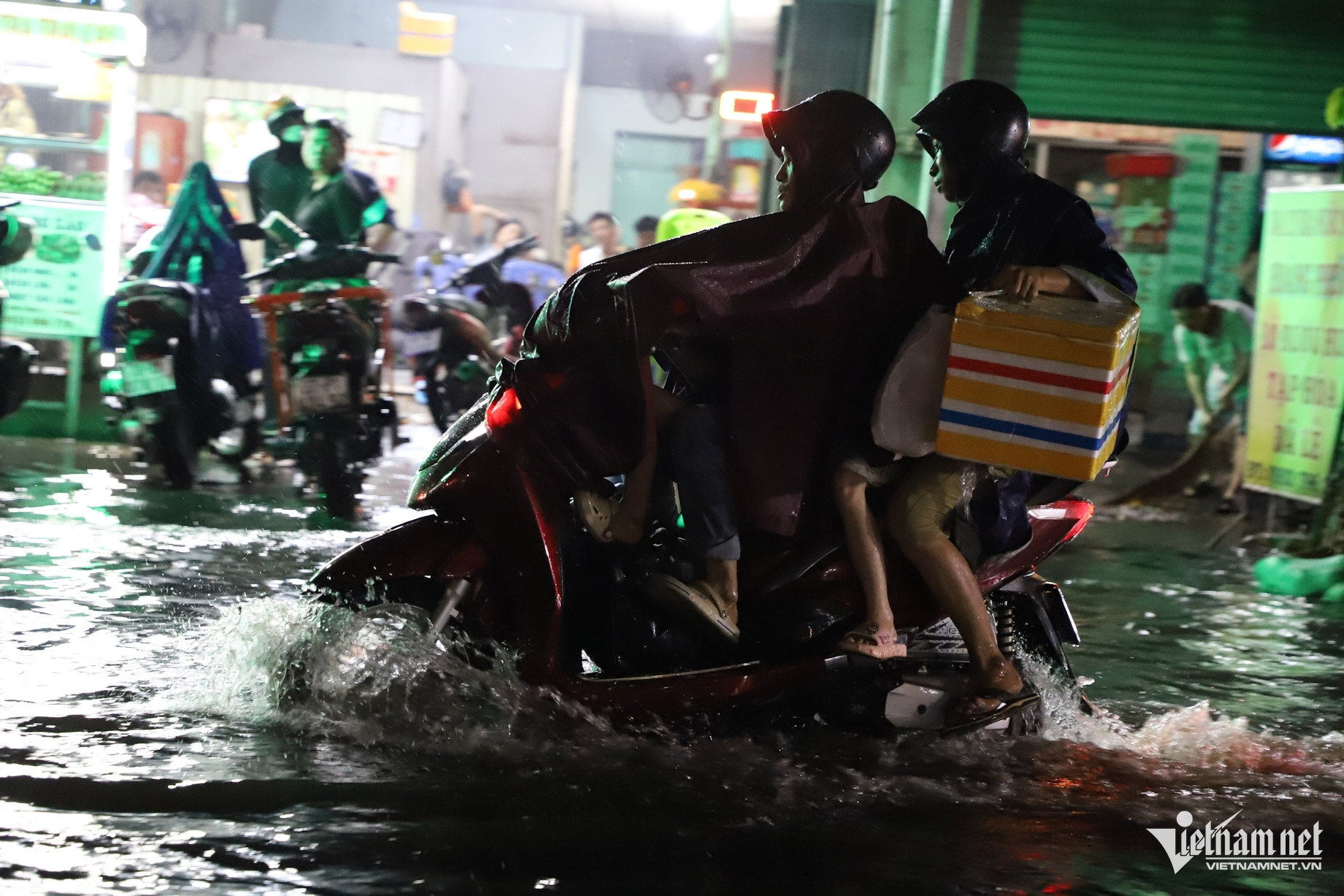 Chiều tối 7/5, nhiều nơi ở TPHCM xuất hiện mưa lớn trái mùa kèm hiện tượng dông sét mạnh. Mưa kéo dài hơn 1 giờ khiến nước thoát không kịp gây ngập nặng trên diện rộng.