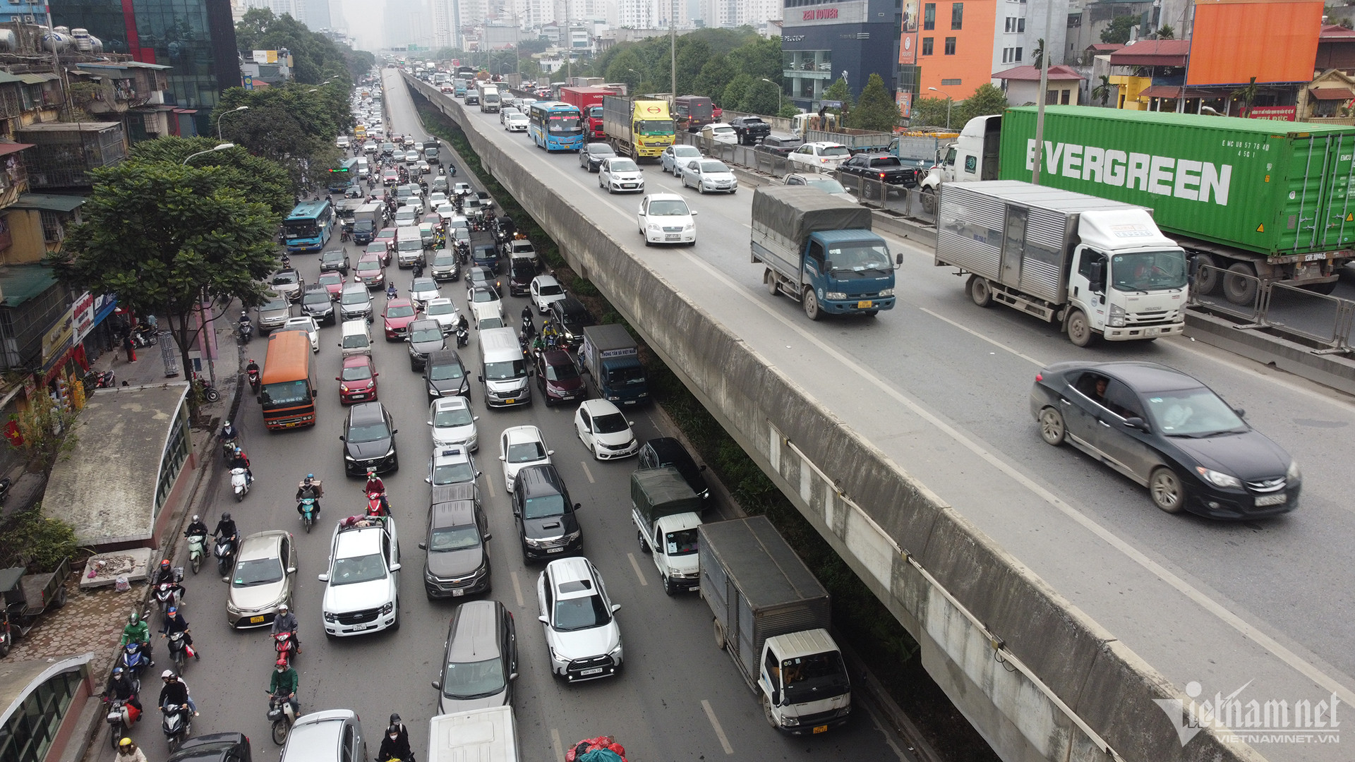 Tình trạng ùn tắc kéo dài diễn ra ở cả 2 chiều đường trên tuyến Vành đai 3 trên cao. Hướng từ cầu Thăng Long về cầu Thanh Trì, ùn tắc từ nút giao Đại lộ Thăng Long - Phạm Hùng đến cầu Thanh Trì, ước tính khoảng 10km. Với chiều ngược lại, tình trạng ùn tắc bắt đầu cầu vượt Mai Dịch - cầu Thăng Long, khoảng 6km.