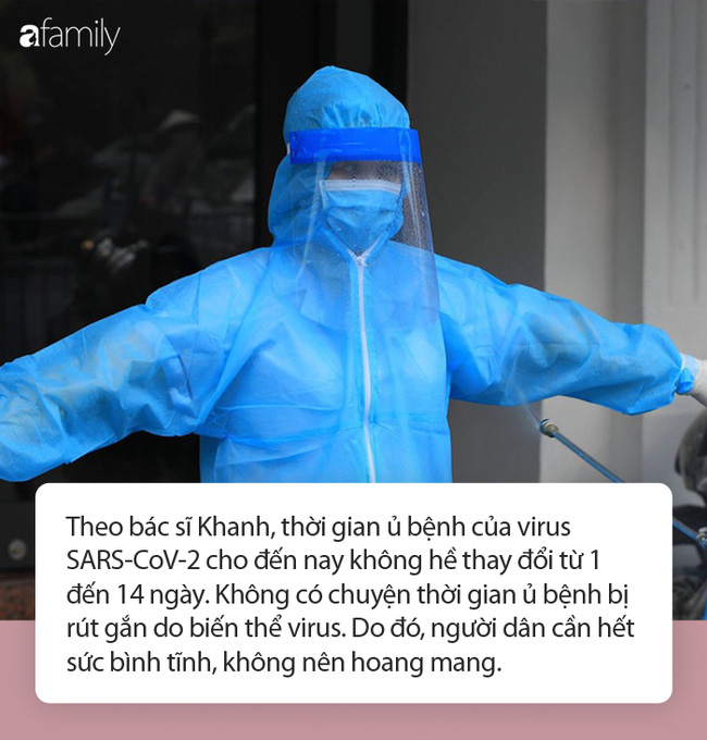 Theo bác sĩ Khanh, thời gian ủ bệnh của virus SARS-CoV-2 cho đến nay không hề thay đổi từ 1- đến 14 ngày. Không có chuyện thời gian ủ bệnh bị rút gắn do biến thể virus. Do đó, người dân cần hết sức bình tĩnh, không nên hoang mang.