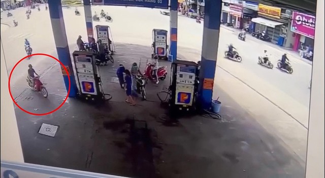 Sự việc xảy ra rất nhanh khiến nhiều nhân viên và người dân đang đổ xăng không khỏi hoảng sợ, bỏ chạy tán loạn. Một nhân viên sau đó đã nhanh chóng dùng bình cứu hỏa phun vào đám cháy.