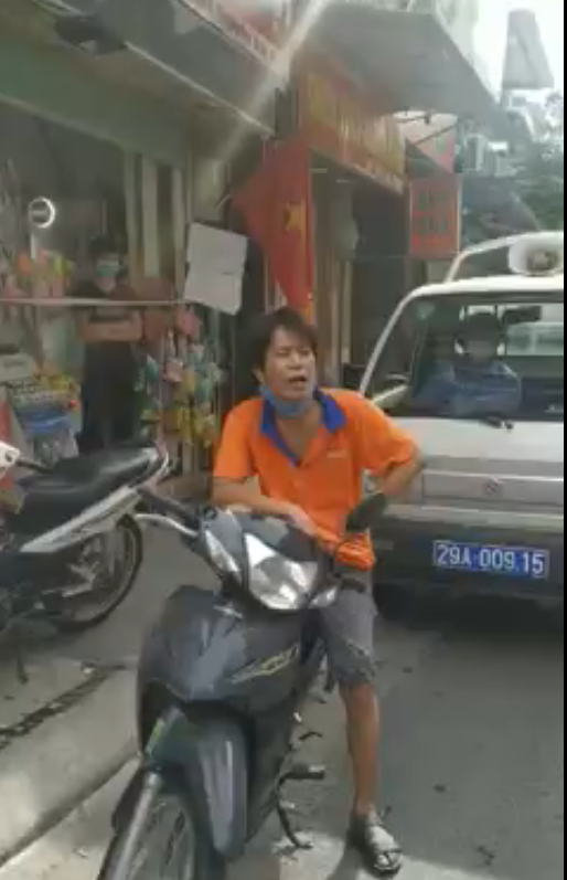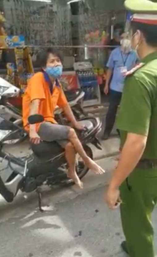 Lúc này, các chiến sĩ công an giải thích các lỗi vi phạm khi qua chốt không dừng xe dù đã có hiệu lệnh của lực lượng chức năng yêu cầu dừng lại, người này tỏ thái độ thách thức và cãi cùn: "Tôi chả thấy thấy cái gì cả, chỉ nhìn thấy màu đen màu đỏ, chốt là cái gì? Tôi đi ngoài đường mua đồ ăn, thức uống. Các anh cấm tôi là thế nào?".