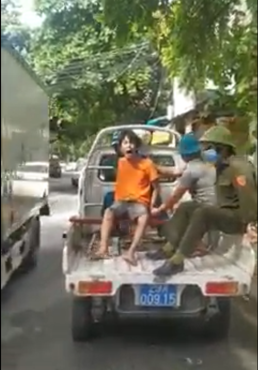 Sau một hồi đôi co, lực lượng chức năng yêu cầu đối tượng này về trụ sở làm việc. Tuy nhiên, hắn ta liên tục tháo khẩu trang, chửi bới không chịu chấp hành. Các cán bộ trực chốt sau đó buộc phải khống chế đối tượng lên xe công vụ.