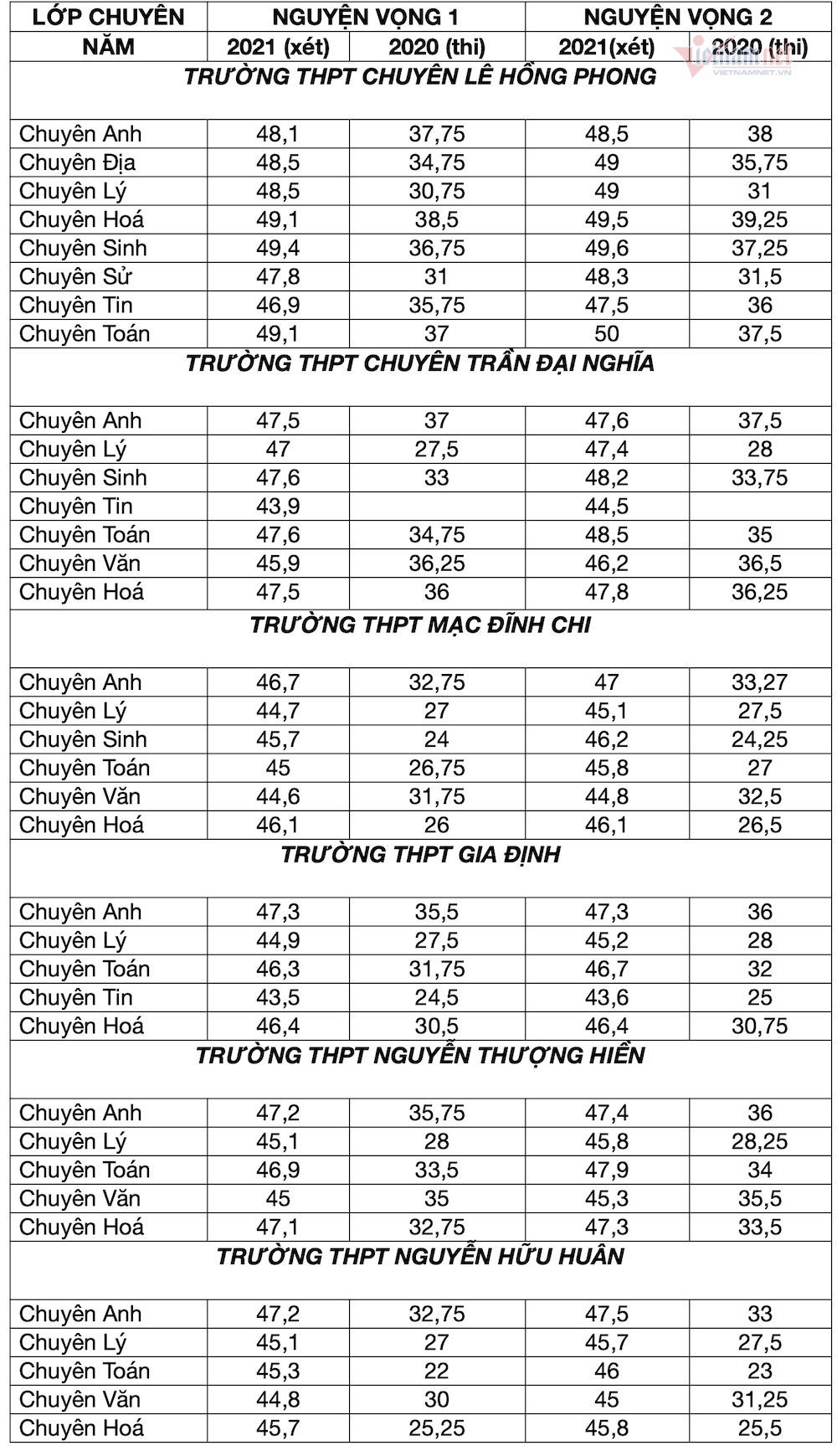 Trong năm đầu tiên TP.HCM thực hiện xét tuyển vào lớp 10, điểm chuẩn lớp 10 chuyên theo phương thức xét tuyển cao ngất ngưởng.