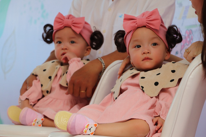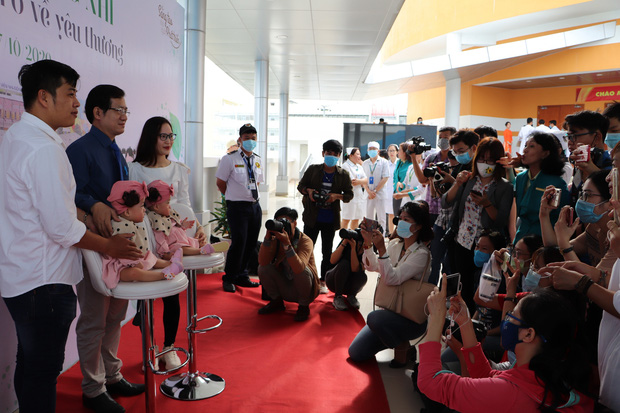 Chị em Trúc Nhi - Diệu Nhi xuất hiện cùng bố mẹ và ông bà, 2 chị em vui vẻ chụp hình cùng mọi người, thấy các cô chú y bác sĩ tới chụp hình và chúc mừng, 2 bé đều cười rạng rỡ.