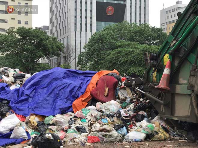 Sau nhiều ngày bị chặn, trung tâm Hà Nội rác thải đã ngập ngụa, bốc mùi hôi thối.