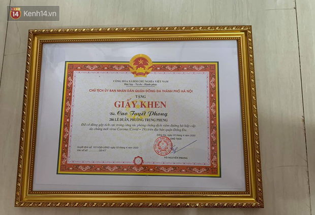 Trân quý tấm lòng của chị UBND quận Đống Đa đã trao tặng cho chị Tuyết giấy khen có đóng góp tích cực trong công tác phòng chống dịch Covid-19 trên địa bàn quận.