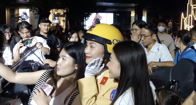 Sau chương trình, rất nhiều bạn trẻ đã vây quanh chị xin chụp ảnh lưu niệm. Sự chân tình, gần gũi của nữ thiếu tá đã tạo nên hình ảnh đẹp về người chiến sĩ công an nhân dân trong lòng công chúng.