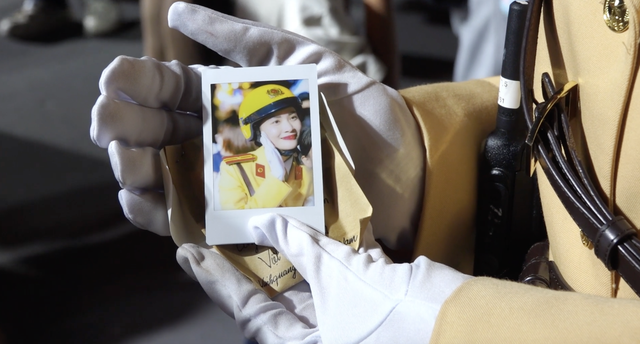Gương mặt ánh lên niềm hạnh phúc, chị Thu giơ ra một bức ảnh nhỏ do "người hâm mộ" tặng: “Món quà này là đến từ một người fan hâm mộ. Bạn ấy nói rất ngưỡng mộ nữ cảnh sát giao thông lại có thể chạy chiếc xe lớn, đi đầu đội hình đầy tự tin và bản lĩnh như vậy.”