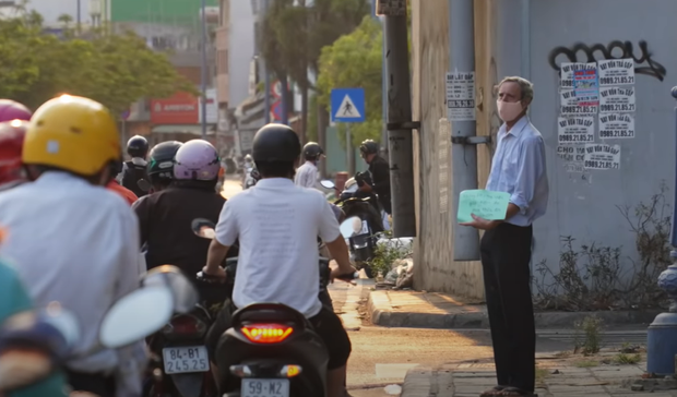 Rơi vào cảnh bất đắc dĩ, khi không còn sự lựa chọn nào khác, tiền thì hết, thức ăn không còn, người thầy giáo buộc phải cầm tấm bảng với nội dung "xin tiền", ăn mặc lịch sự đứng ở một góc đường Võ Văn Kiệt - Nguyễn Tri Phương (quận 5) để cầu xin sự giúp đỡ.