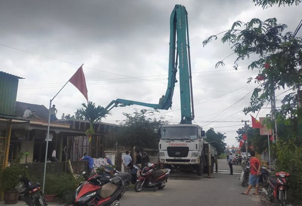 Theo đó, vào khoảng 10h40 ngày 28/4, xe bơm bê tông mang BKS: 37C - 135.41 đến công trình xây dựng của một gia đình phường Trung Lương để vận hành đổ mái tầng một.