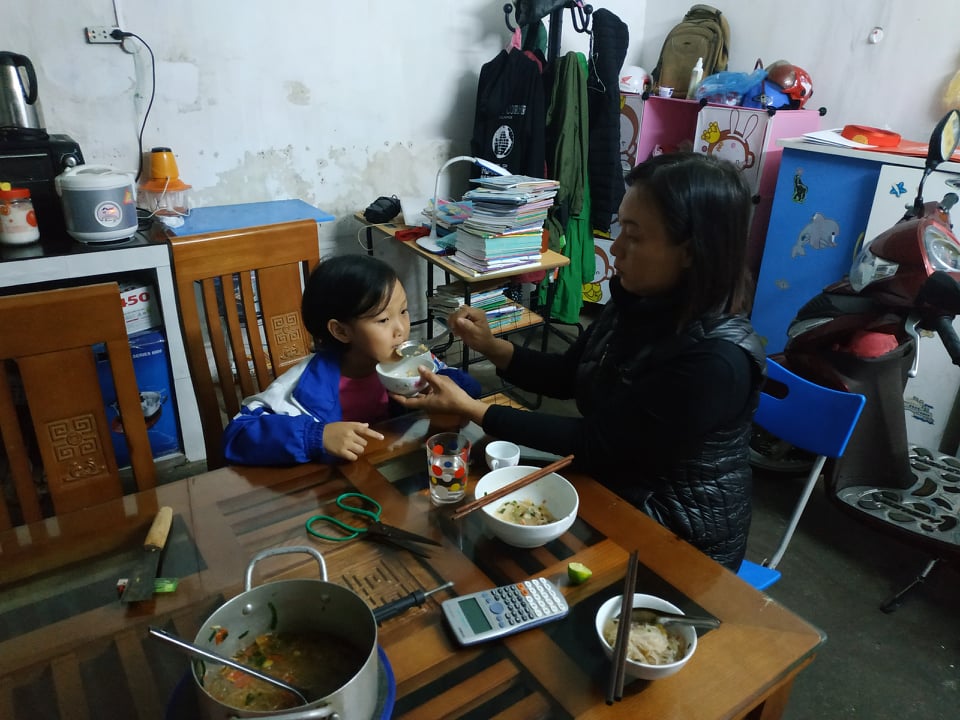 Cô giáo Hương bị ung thư tuyến giáp nhưng vẫn canh cánh 2 đứa con. Cháu Trịnh Bảo Thy, 6 tuổi, bị động kinh và cháu lớn đang học lớp 8.