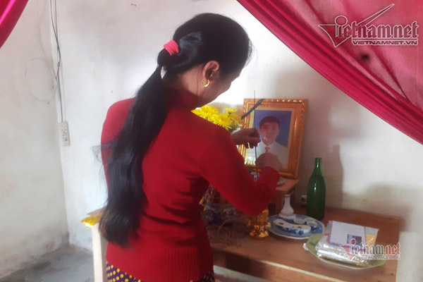 Sáng 3/11, tại gia đình bà Nguyễn Thị Mai (57 tuổi, xã Thiên Lộc), bàn thờ được lập nên để thờ con trai là anh N. khói hương nghi ngút. Rất đông người dân thôn Đông Nam đến thăm hỏi và chia sẻ với gia đình bà Mai.