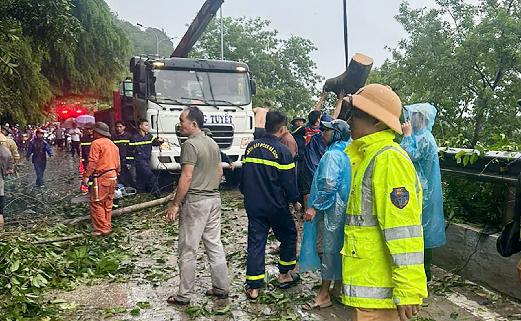 Ngay sau khi sự việc xảy ra, nhiều người đi đường đã nhanh chóng tri hô, hỗ trợ chặt cành cây, nhanh chóng đưa 2 người thoát ra ngoài an toàn.