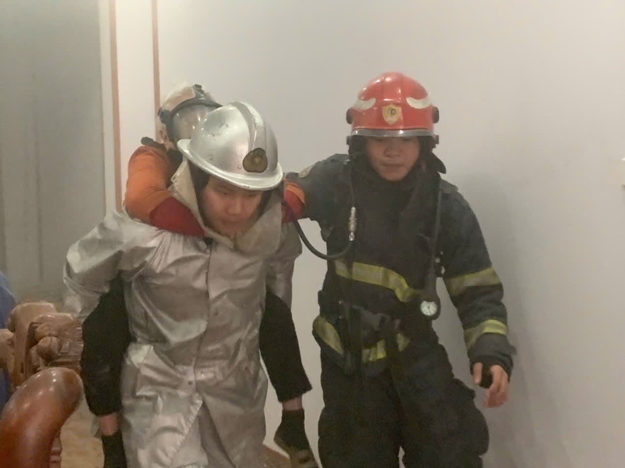 Khi lực lượng chức năng có mặt, khói dày đặc đã bao trùm toàn bộ ngôi nhà. Qua trinh sát, phát hiện một cụ già và một em nhỏ đang mắc kẹt tại tầng 2, các chiến sĩ nhanh chóng triển khai biện pháp thoát khói, tiếp cận khu vực nguy hiểm và đưa hai nạn nhân xuống nơi an toàn.