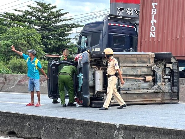 Khi xe đến trước khu vực thuộc phường Bình Thắng (TP.Dĩ An, tỉnh Bình Dương) thì va chạm với một xe ô tô 5 chỗ mang biển số tỉnh Đồng Nai do tài xế B.N.Q. (32 tuổi, quê Đồng Nai) cầm lái. Sau va chạm, chiếc ô tô 5 chỗ lật trên đường.