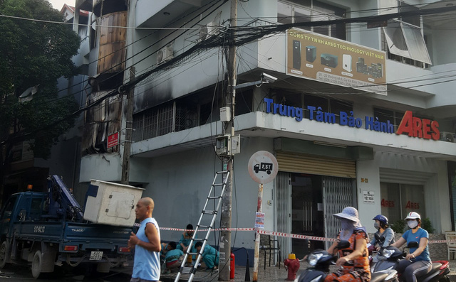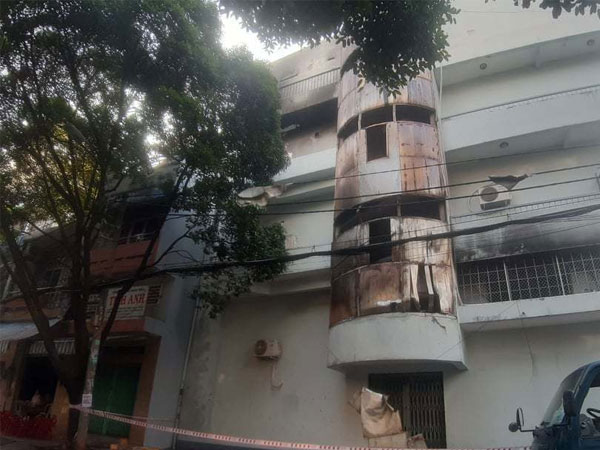 Tại hiện trường, 4 tầng căn nhà bị cháy đen, cửa kính bị vỡ, nhiều mảnh tôn, mảnh thủy tinh rơi xuống mặt đường, nhiều tài sản bị thiêu rụi. Rất may, vụ việc không có thương vong về người.